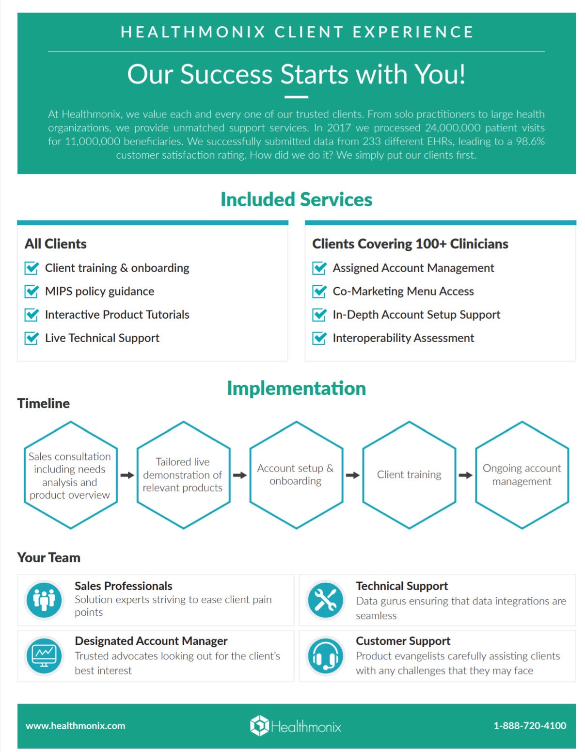 Healthmonix has provided streamlined reporting options as a CMS Qualified Registry since 2009. From solo providers to large Health Systems, we provide unmatched support and adaptable reporting plans to meet your goals.  In 2017, we successfully submitted data from over 30 million patient visits and 233 different EHRs, leading to a 98.6% Customer Satisfaction Rating for our MIPSPRO Registry.  Our new platform, ACO PRO, allows Accountable Care Organizations to track and report 15 CMS Web Interface (WI) quality measures.
