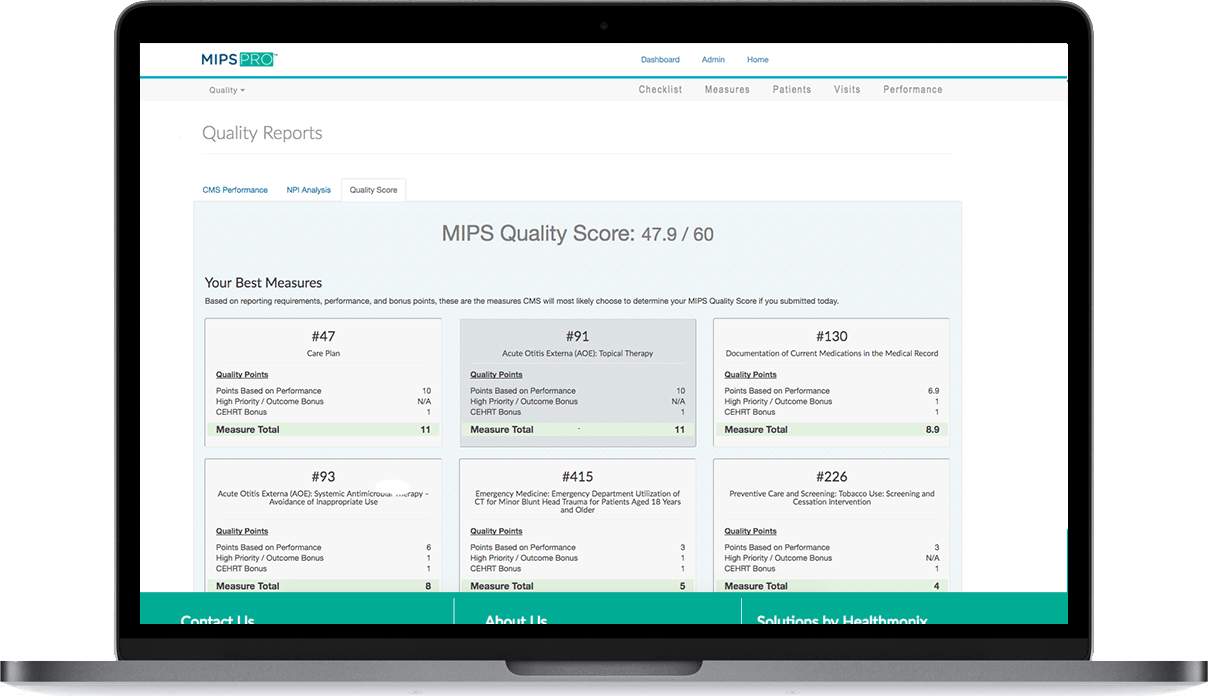 We provide the ability to register and report as a group and then split your group into individual NPIs. With no extra cost and minimal effort, users can decide at submission to report from MIPSPRO both as a group and as individuals so that you get credit for the higher final score.